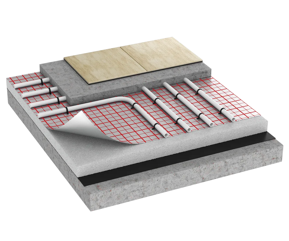 Folia pod ogrzewanie podłogowe Eurovent® ALUFLOOR termoizolacyjna, metalizowana jednostronnie. Zalecana jako warstwa izolacyjna pod ogrzewanie podłogowe, panele podłogowe oraz warstwa izolacyjna pod i za elementy grzewcze. Skutecznie zatrzymuje parę wodą i odbija promieniowanie cieplne. Specjalnie nadrukowana kratka na całej powierzchni folii ułatwia montaż instalacji grzewczej.