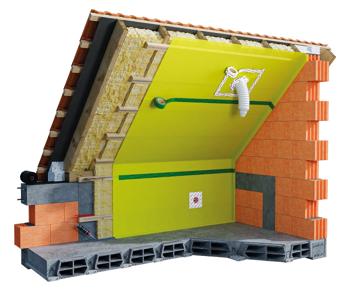 Folia paroizolacyjna Eurovent® DB, wykonana z polietylenu niskiej gęstości (LDPE). Skutecznie zatrzymuje parę wodną przemieszczającą się w kierunku ścian, podłóg, poddaszy i stropów z wnętrza budynku. Materiał, z którego jest wykonana zapewnia dużą wytrzymałość oraz odporność na czynniki atmosferyczne, takie jak śnieg, deszcz oraz zanieczyszczania.
