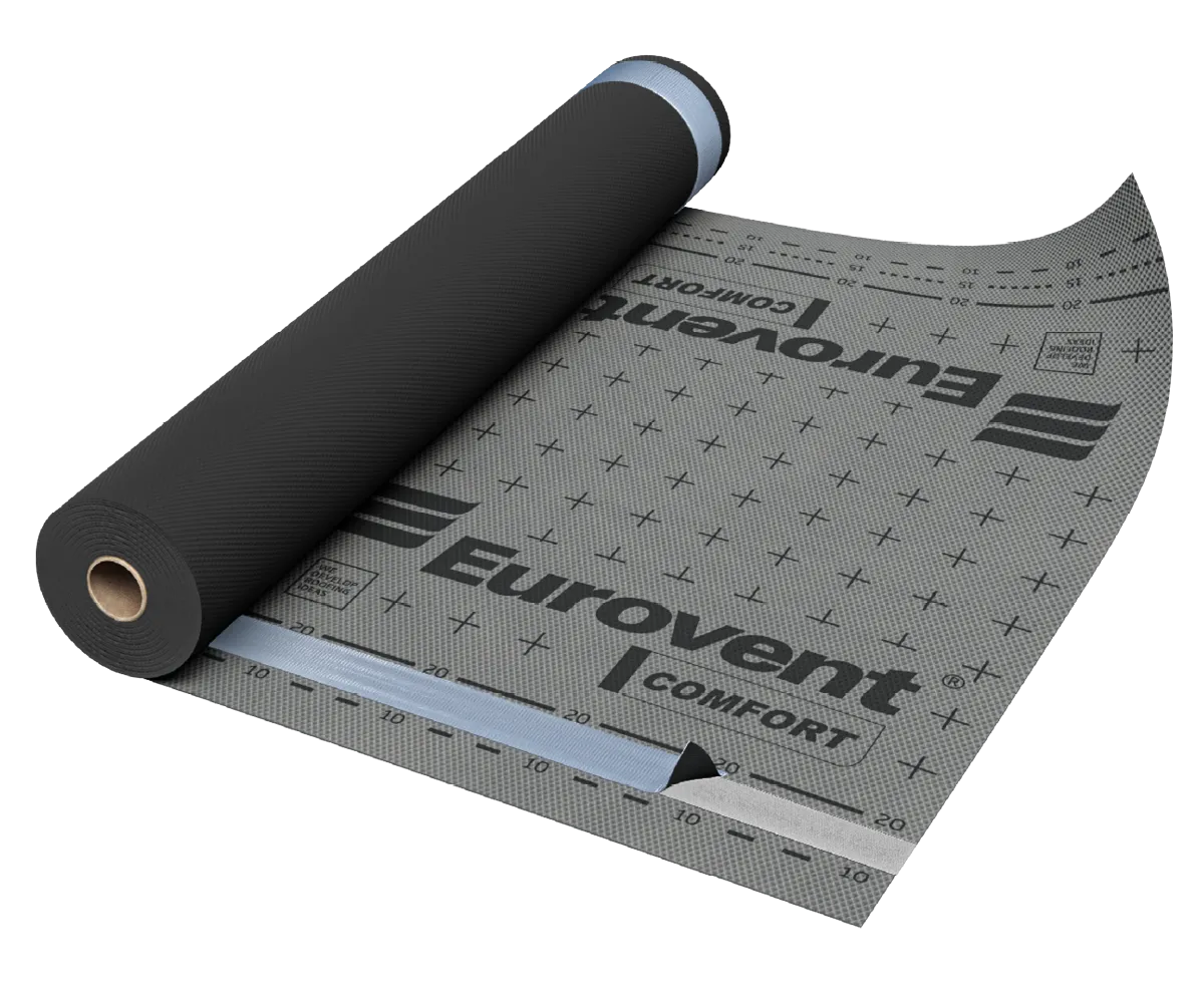 The Eurovent® COMFORT roof membrane, three-layer, highly vapour-permeable, used for insulated and ventilated sloping roofs, also with full sarking and low pitch. It has the highest tear resistance in its class, so it is frequently chosen by the most demanding roofers. It is suitable for concrete, clay tiles, metal tiles, aluminium sheets. Available as an option with 2 self-adhesive tapes - SYSTEM SK2.