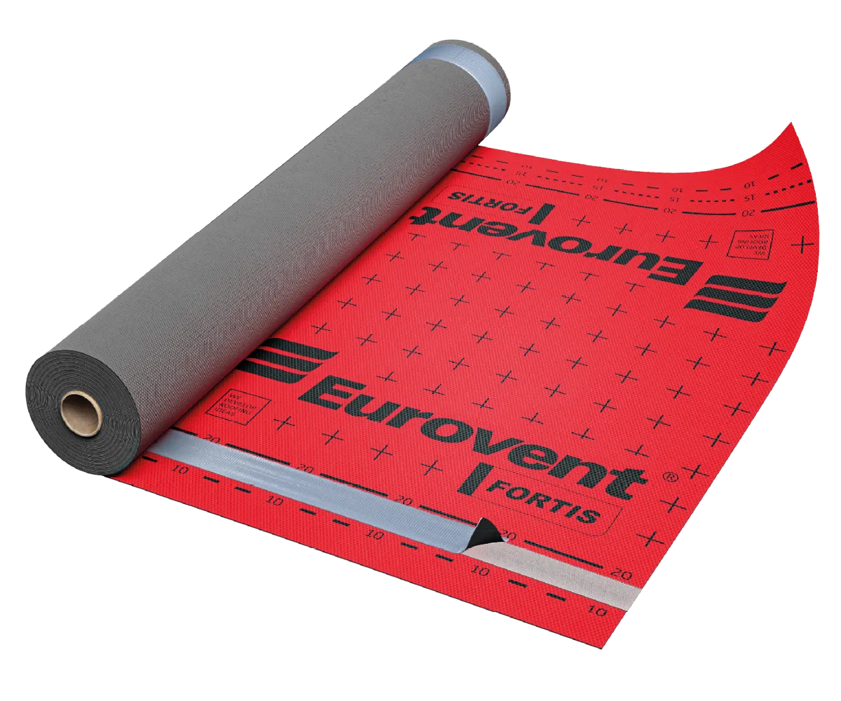 The Eurovent® FORTIS roof membrane, three-layer, highly vapour-permeable. It is used for insulated and ventilated sloping roofs, also with full sarking. It has the highest tear resistance in its class, therefore it is chosen by the most demanding roofers. It is suitable for concrete, ceramic, metal tiles, aluminium sheets, slate and in frame construction. Available as an option with 2 self-adhesive tapes - SYSTEM SK2.