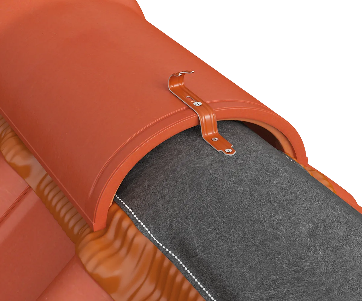 The Eurovent® UNI GRIP ridge tile clip is used for fixing most ridge tiles to the ridge batten. Secured to the ridge batten with two screws and hooked onto the ridge tile with its upper part, it ensures stable fastening of the ridge tile along the ridge and provides resistance to wind uplift and displacement caused by strong winds. Its design and profile make it suitable for use with most concrete roof tiles available on the market.