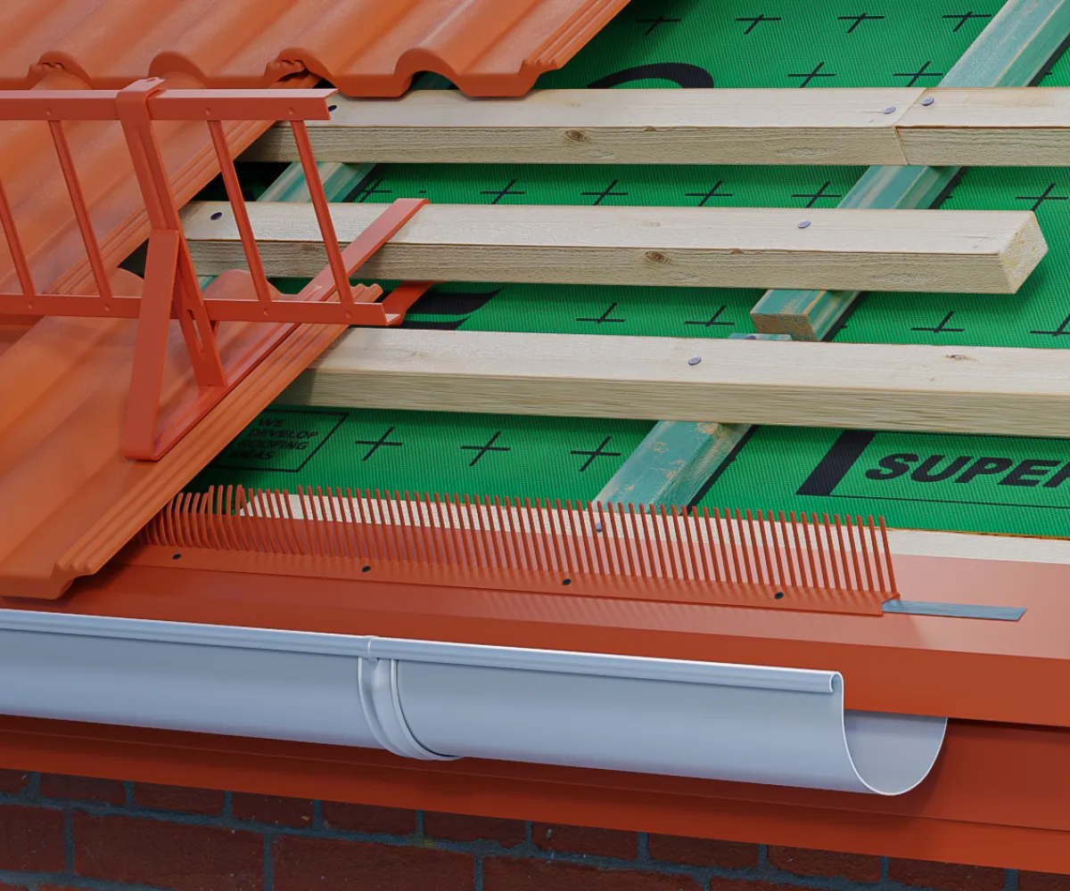 Grzebień okapu Eurovent® GRZEBIEŃ X stosowany do zabezpieczania okapu dachu przed ptactwem, gryzoniami oraz większymi insektami. Chroni zabezpieczany obszar przed nawiewaniem liści i innych zanieczyszczeń, zapewniając tym samym odpowiednią wentylację i cyrkulację powietrza w obszarze dachu. Nadaje się do stosowania do prawie wszystkich typów pokryć dachowych.