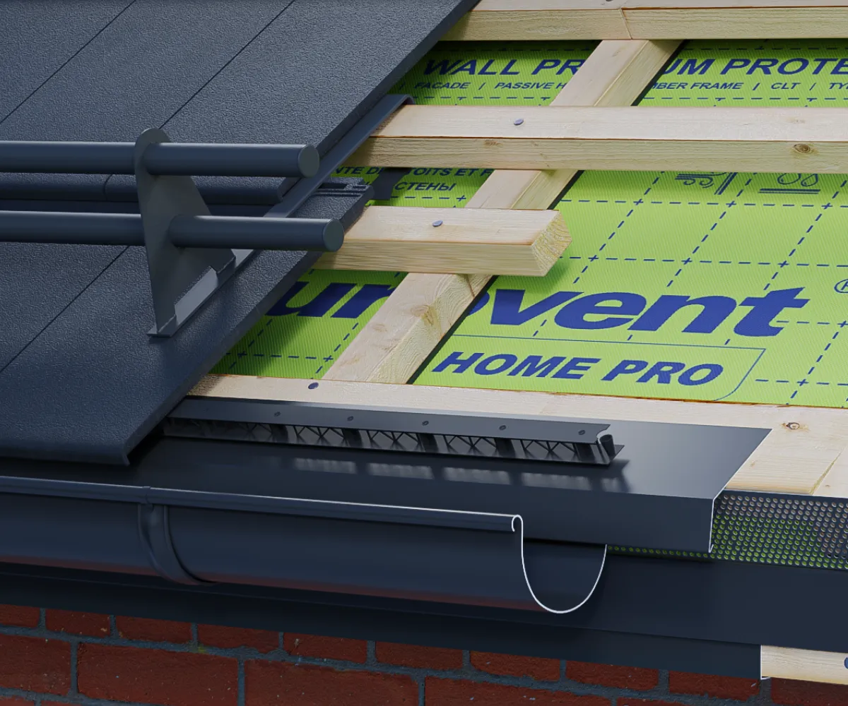 Pas nadrynnowy Eurovent® PAS OKAPU stosowany jest jako wzmocnienie i ochrona okapu w obszarze odpowiedzialnym za odprowadzanie wody do systemu rynnowego. Chroni przed wilgocią i ułatwia drenaż wody stanowiąc jednocześnie estetyczne wykończenie. Wyprofilowany w sposób umożliwiający łatwy i szybki montaż.
