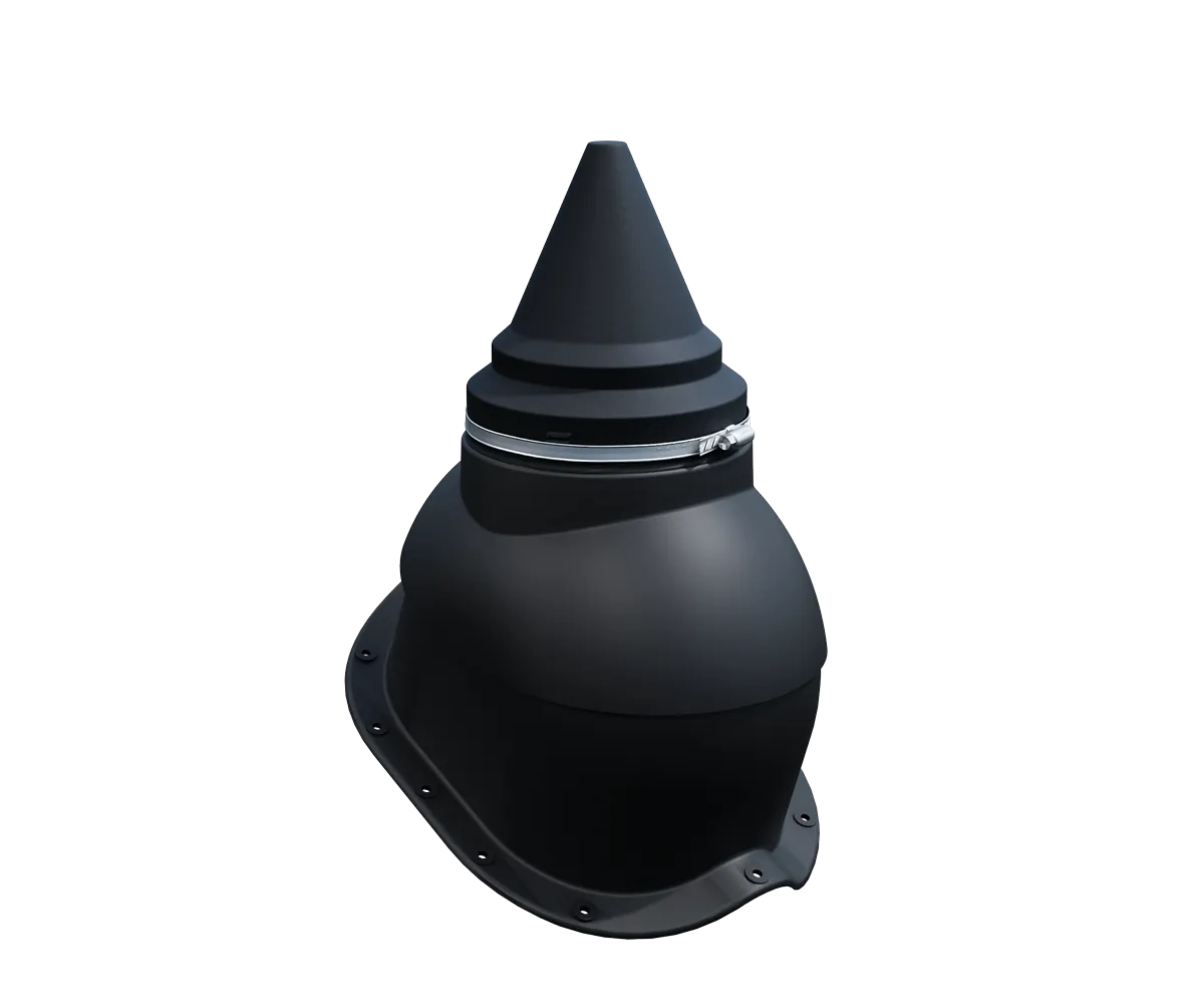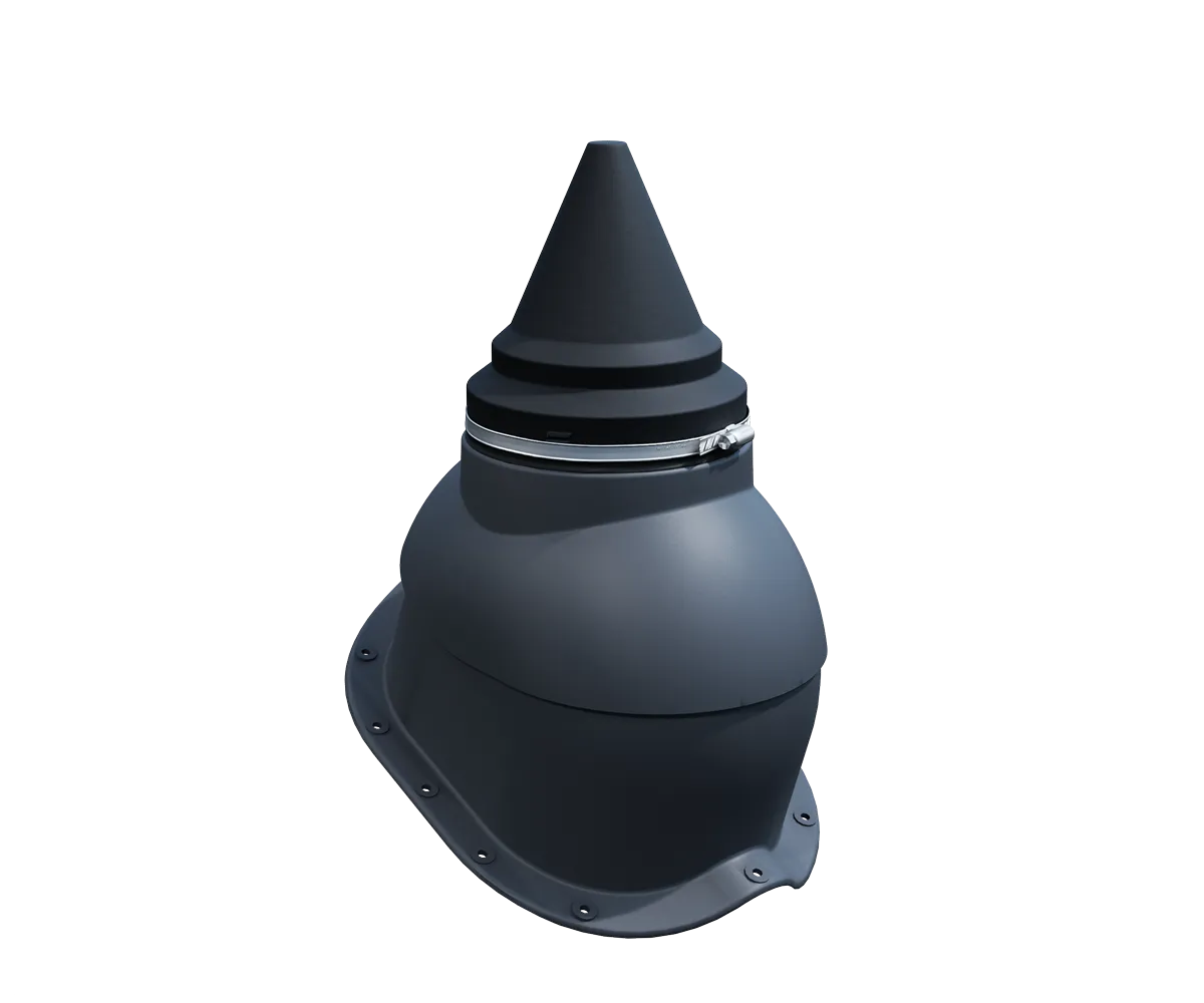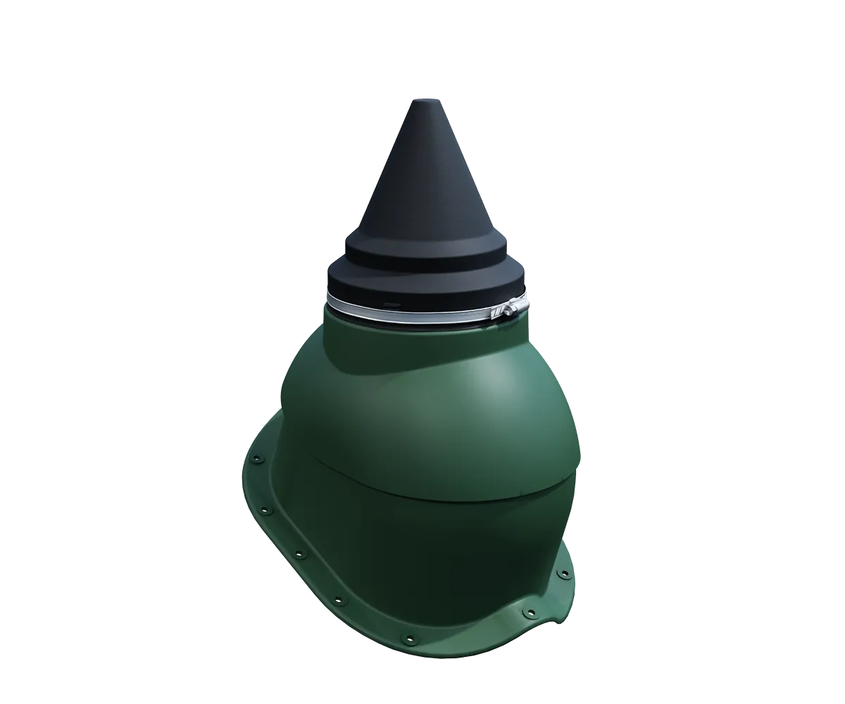 Przejście antenowe Eurovent® SATTOS X N25 wykonane z tworzywa sztucznego i nasadki gumowej. Stosowane do montażu anten o średnicy masztu od 15 do 90 mm na dachach skośnych o kącie nachylenia od 5° do 45°. Posiada podstawę do montażu kominka na blachodachówkach o przetłoczeniu N25. Dostępny w kilku najpopularniejszych wersjach kolorystycznych wg kolorystyki RAL.