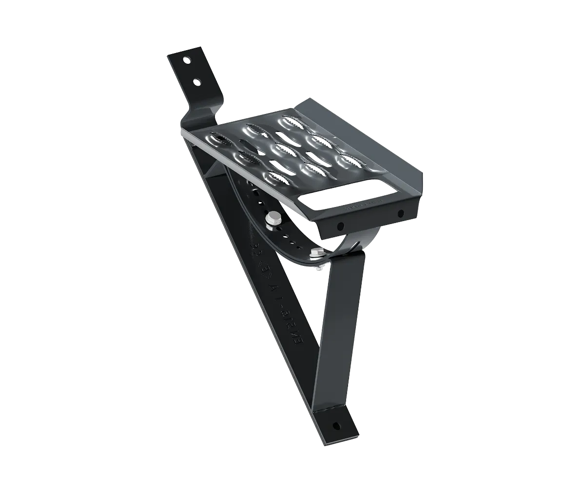 Stopień kominiarski Eurovent® STEP SET METAL 35/380 znajduje zastosowanie jako element komunikacji dachowej umożliwiający sprawne poruszanie się kominiarza w obszarze komina. Zestaw składa się z 2 kompletnych stopni i zawiera wszystkie elementy potrzebne do montażu dwóch stopni kominiarskich. Dzięki szerokiej gamie wsporników, produkt można dopasować do prawie każdego rodzaju pokrycia dachowego. Zaleca się montaż na połaciach dachowych o nachyleniu od 15˚ do 60˚.