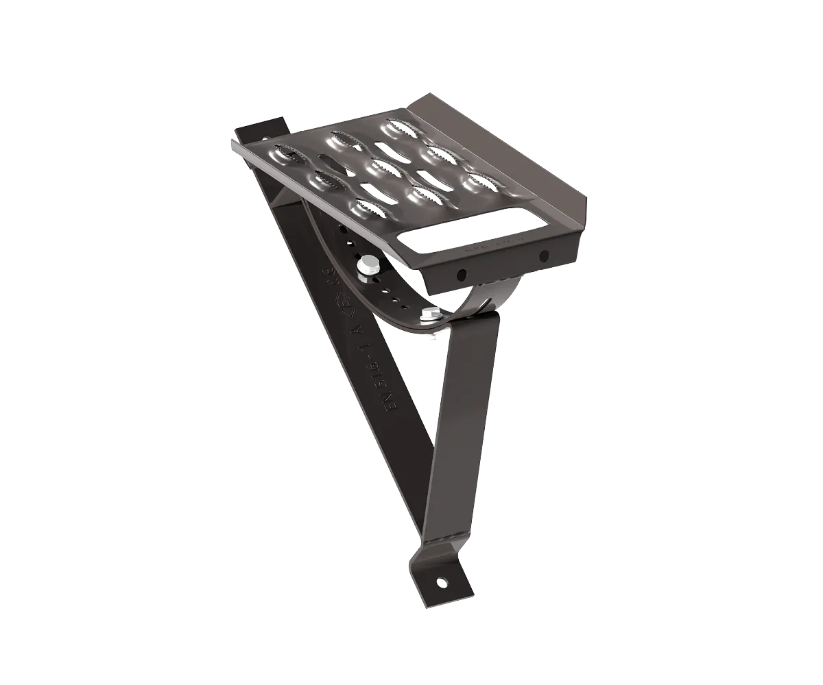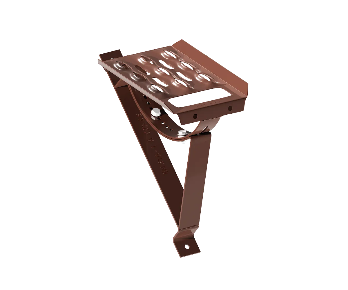 Stopień kominiarski Eurovent® STEP SET METAL 350/35 w kompletnym zestawie montażowym złożonym ze wspornika Eurovent® SUPPORT oraz stopnia kominiarskiego Eurovent® STEP. Elementy wykonane ze stali ocynkowanej wchodzą w skład systemu do bezpiecznego poruszania się po połaci dachowej o nachyleniu od 15˚ do 60˚. Stopień posiada na całej powierzchni tłoczenia antypoślizgowe oraz uchwyt pod rękę. Dostępny w kilku wersjach kolorystycznych malowanych farbą proszkową wg kolorystyki RAL.