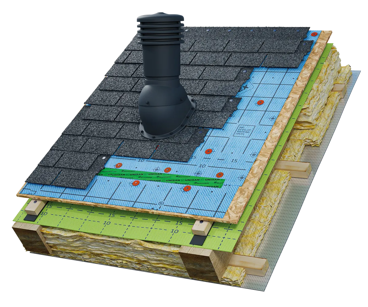 Stosowanie kompletnych rozwiązań systemowych Eurovent® gwarantuje skuteczne odprowadzanie wilgoci, stabilny przepływ powietrza oraz długotrwałą szczelność całego systemu dachowego.