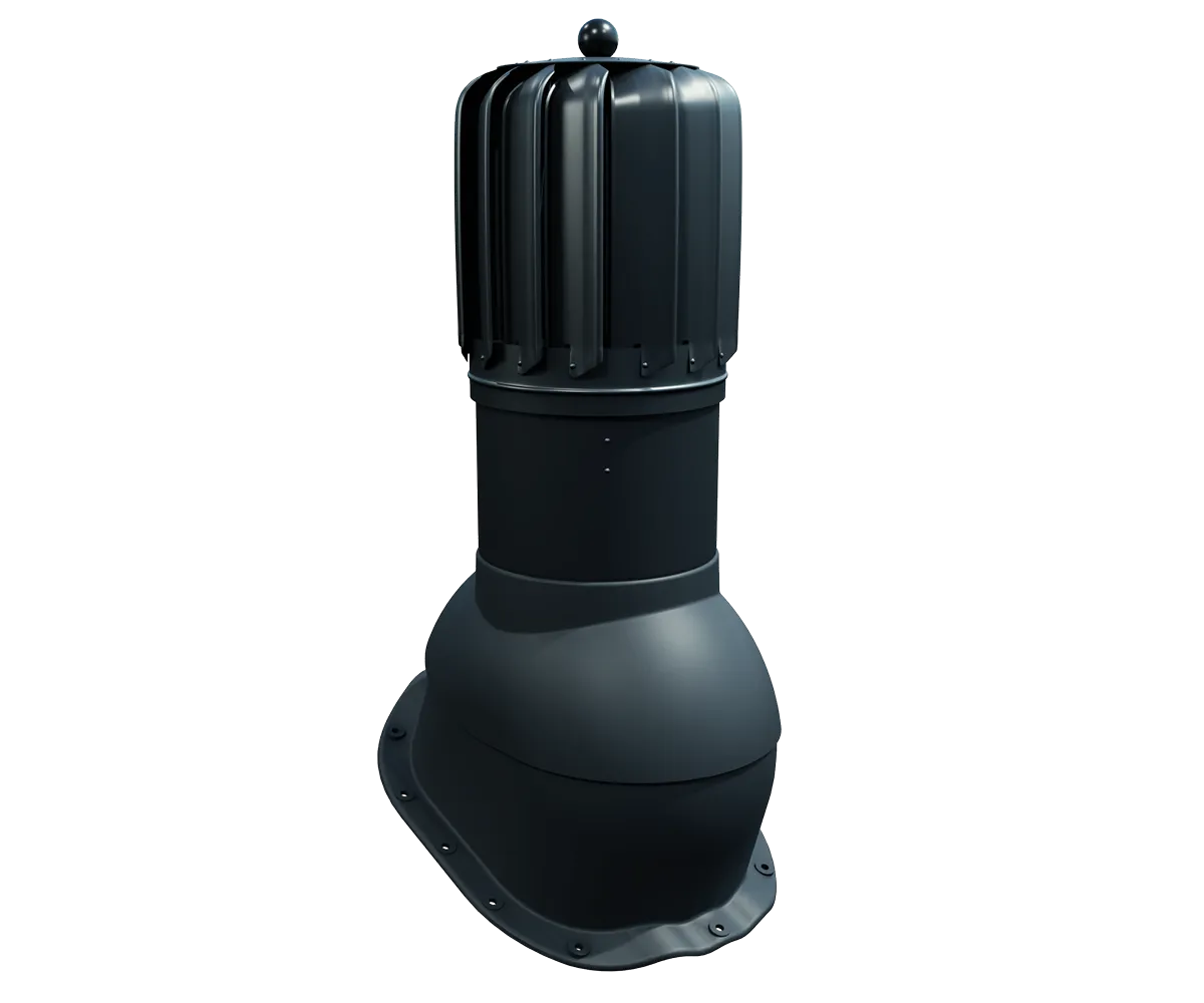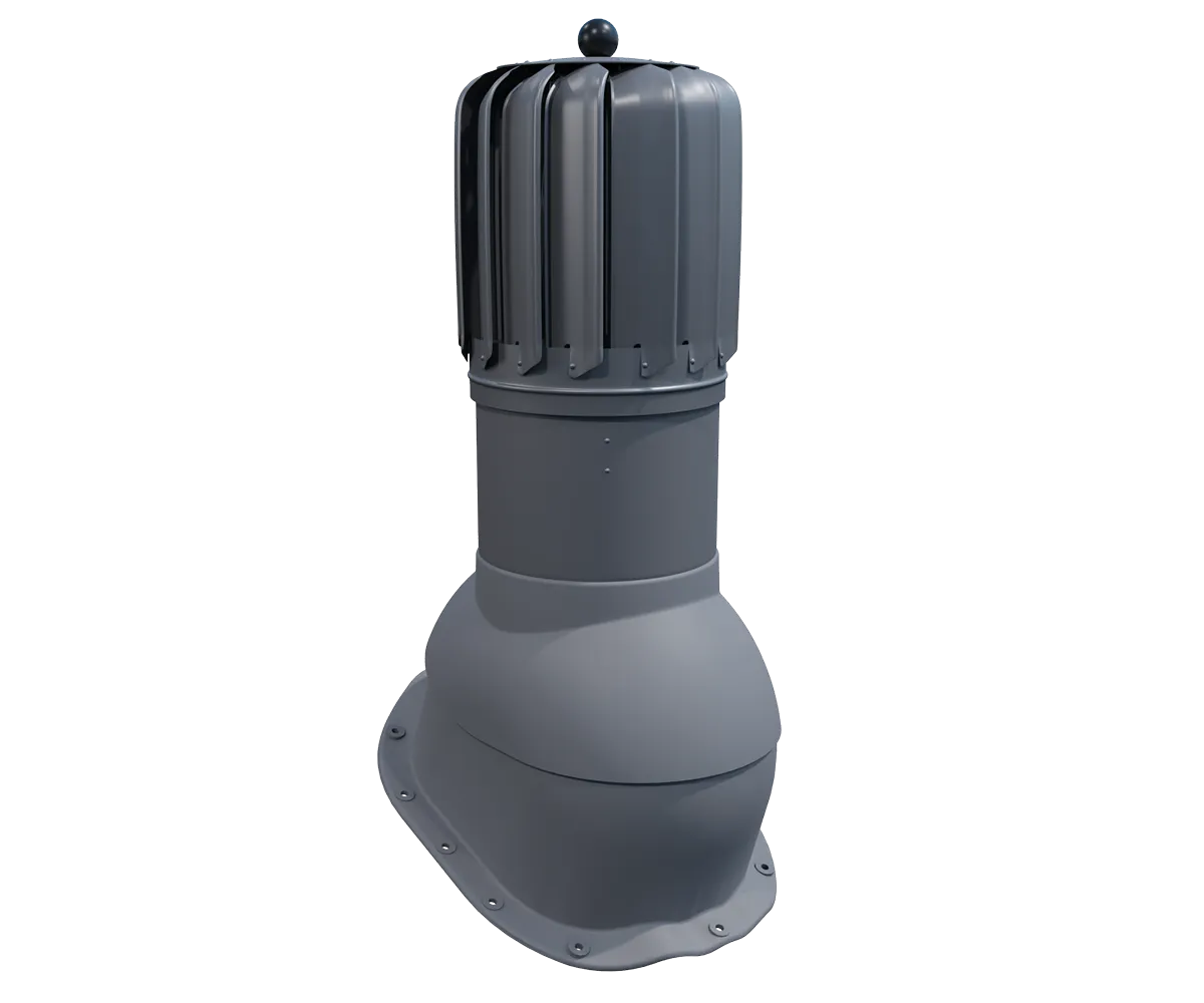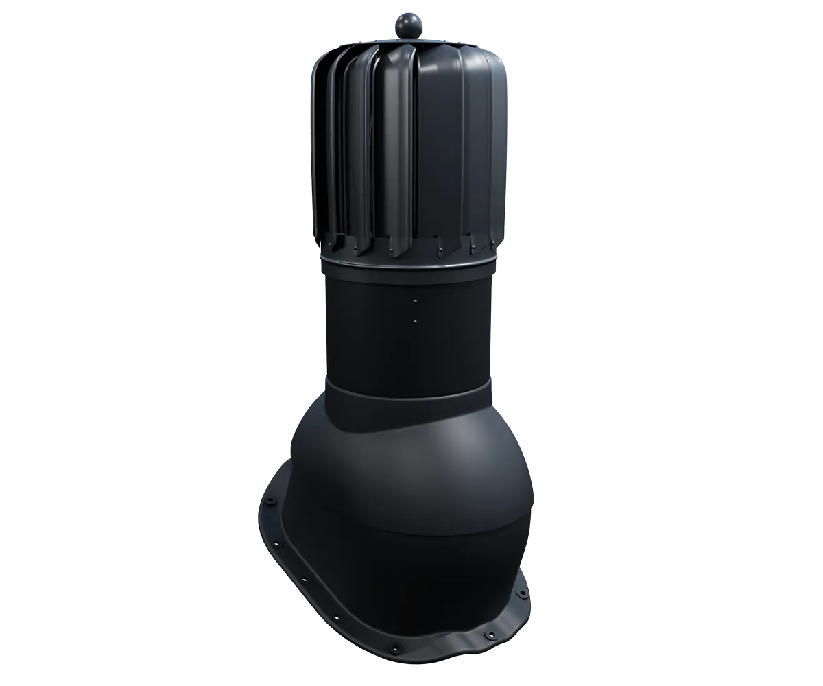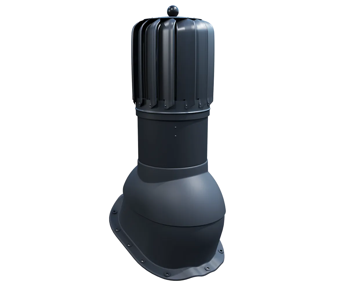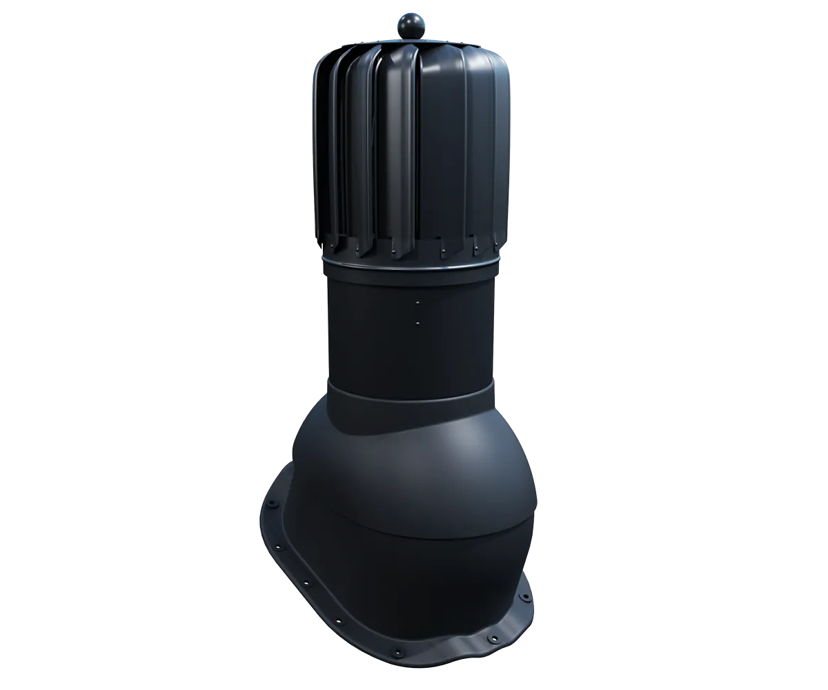 Kominek dachowy rotacyjny VENTOS X ROTO G18 o przekroju wentylacyjnym 170 mm oraz średnicy 150 mm wykonany z wysokiej jakości tworzywa sztucznego, aluminium oraz blachy ocynkowanej. Wyposażony został w turbinę osadzoną na specjalnym łożysku kulkowym zapewniający niską oporność oraz wysoką sprawność.  Zastosowana turbina wyposażona aż w 15 profilowanych aluminiowych łopatek o geometrii zwiększającej prawidłowy ciąg kominowy przez wytworzenie ciśnienia w kanale wentylacyjnym, zapobiega tym samym powstawaniu efektowi ciągu wstecznego. Posiada regulację kąta nachylenia od 5° do 45°.Posiada podstawę do montażu kominka na blachodachówkach o przetłoczeniu G18. Kominek występuje w kilku najpopularniejszych wersjach kolorystycznych wg. kolorystyki RAL.
